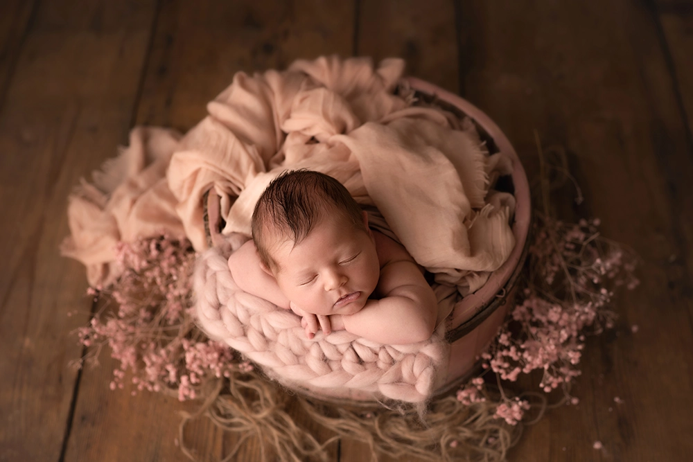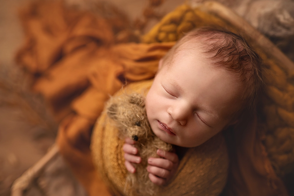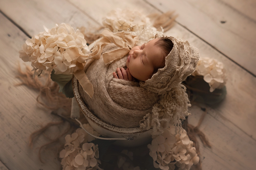 Nous avons à cœur de préserver cette douceur, cette fragilité, cette magie qui entoure l’arrivée de votre bébé. Chaque séance naissance est une parenthèse où l’on prend le temps. Nous travaillons avec patience et bienveillance, toujours en respectant le rythme de votre nourrisson. Dans l’ambiance chaleureuse de notre studio photo, nous utilisons des accessoires bébé soigneusement sélectionnés pour sublimer ces premiers moments sans jamais les dénaturer. Nous capturons les petits détails qui comptent tant : un bâillement, une mimique, des mains minuscules… tout ce qui raconte votre bébé.